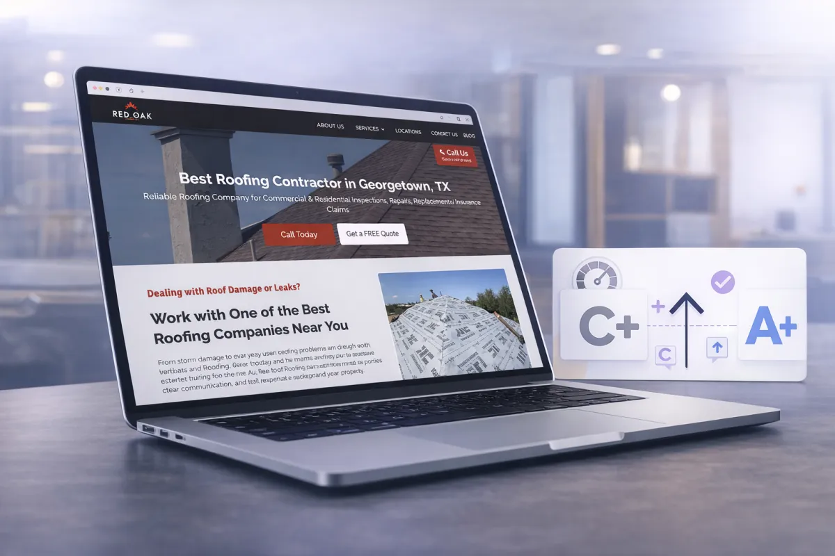 Red Oak Roofworks and Restoration partnered with WebLead Systems to rebuild their website. After testing at C+ using a reliable website audit, the rebuilt site achieved an A+ rating with faster performance, improved usability, and stronger conversion flow.